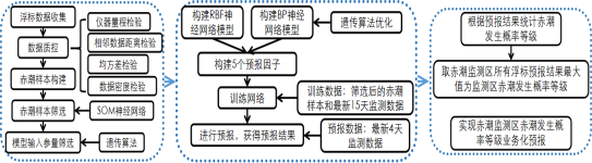 团队基于生态浮标所获取的长序列、多参数观测资料,结合气象和潮汐预报数据,利用人工神经网络即误差反向传播网络(BP)和径向基神经网络(RBF)构建赤潮短期预报模型。模型充分利用浮标实时高频采样数据的优势,采用SOM神经网络、遗传算法、集合预报等方法来提高模型的预报能力,可形成时效3-4天的赤潮发生等级预报;预报的赤潮发生概率分3级,1级表示赤潮不会发生,2级表示赤潮可能会发生,3级表示发生赤潮概率较大。模型在同一赤潮监测区域采用了训练数据共享的方式进行训练,因此具有较好的可移植性,应用前景广泛。