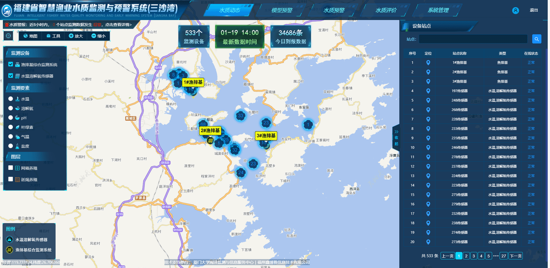 访问地址:福建省智慧渔业水质监测与预警系统(三沙湾)