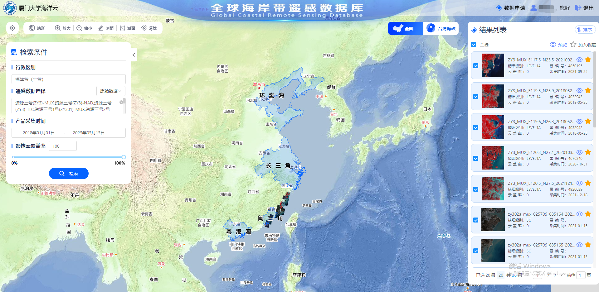 3月17日,由厦门大学环境与生态学院、厦门大学国际可持续性科学研究院和厦门大学海洋监测与信息服务中心联合开发的“全球海岸带遥感数据库共享系统(1.0版本)”正式在厦门大学海洋云平台上线。该系统将为广大师生提供遥感数据的多模式检索、在线查看及共享服务。